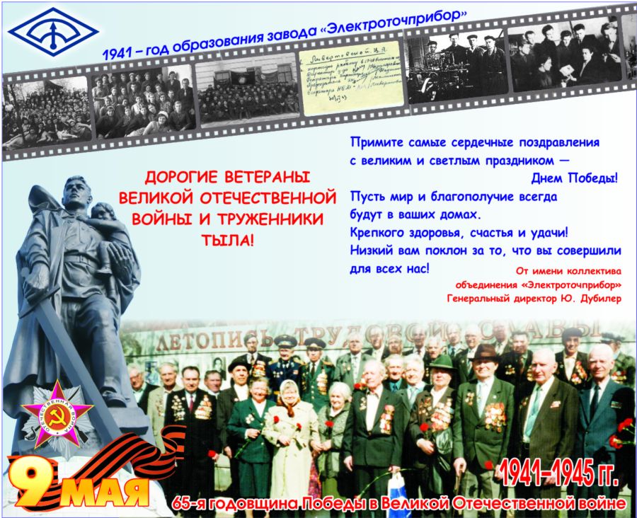 Подзравление с Днем Победы, опубликованное в газете "Московский комсомолец" за 05.05.2010 - от производителя Электроточприбор. Разработка и производство взрывозащищенных светодиодных светильников, щитовых, переносных и стационарных электроизмерительных приборов.